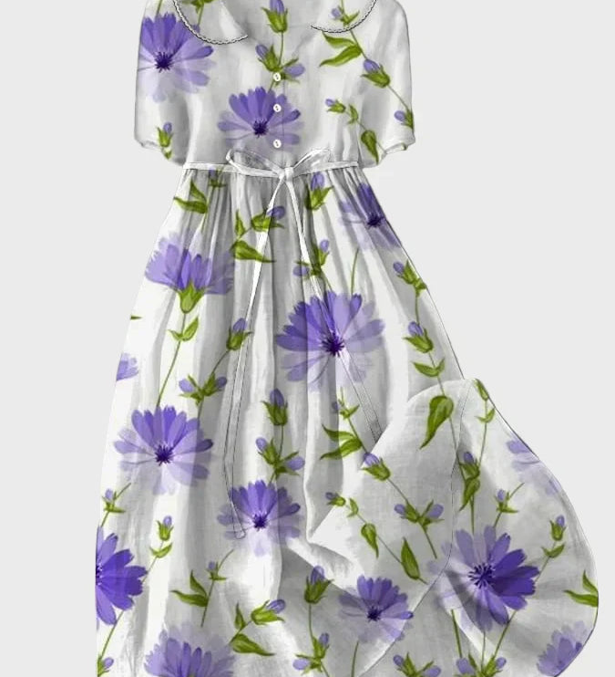 Zieds | Balta violeta ziedu raksta maksi kleita