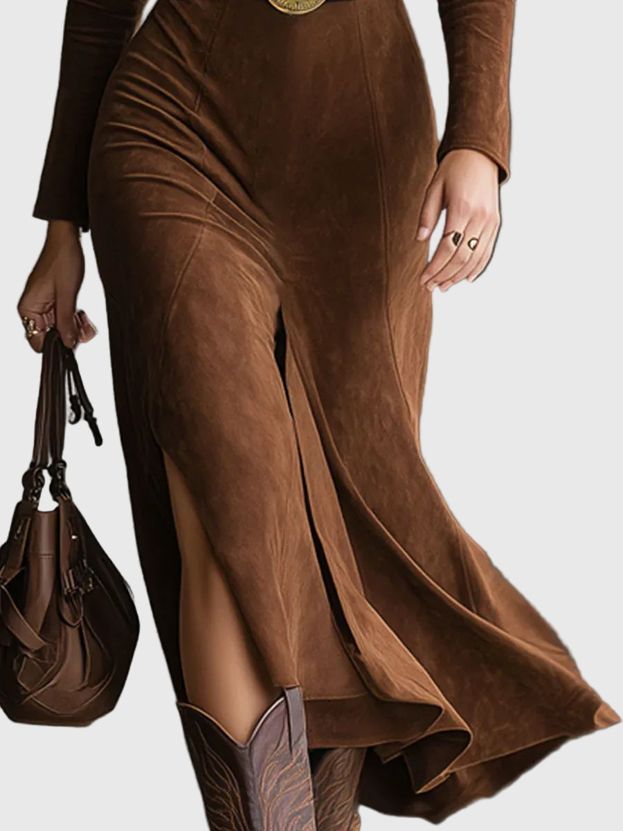 Kalistra | Mākslīgās zamšādas svārki zem ceļiem