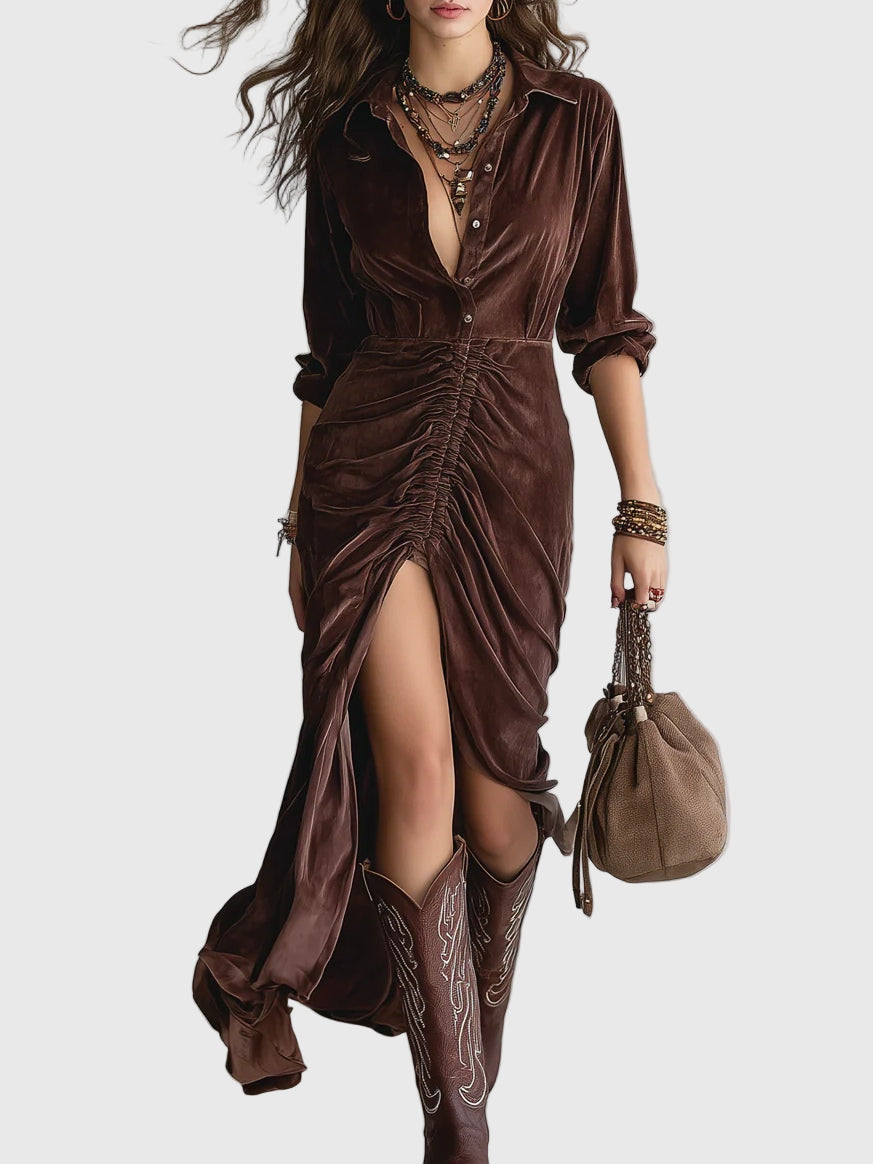 Atklājiet vintage samta midi kleitu Thalisse — unikālu apģērba gabalu, kas nemanāmi apvieno mūžīgu eleganci ar modernu stilu. Izgatavota no augstas kvalitātes velūra, šī kleita piedāvā **greznu sajūtu** un glaimojošu siluetu, kas padara to ideāli piemērotu jebkuram gadījumam.**