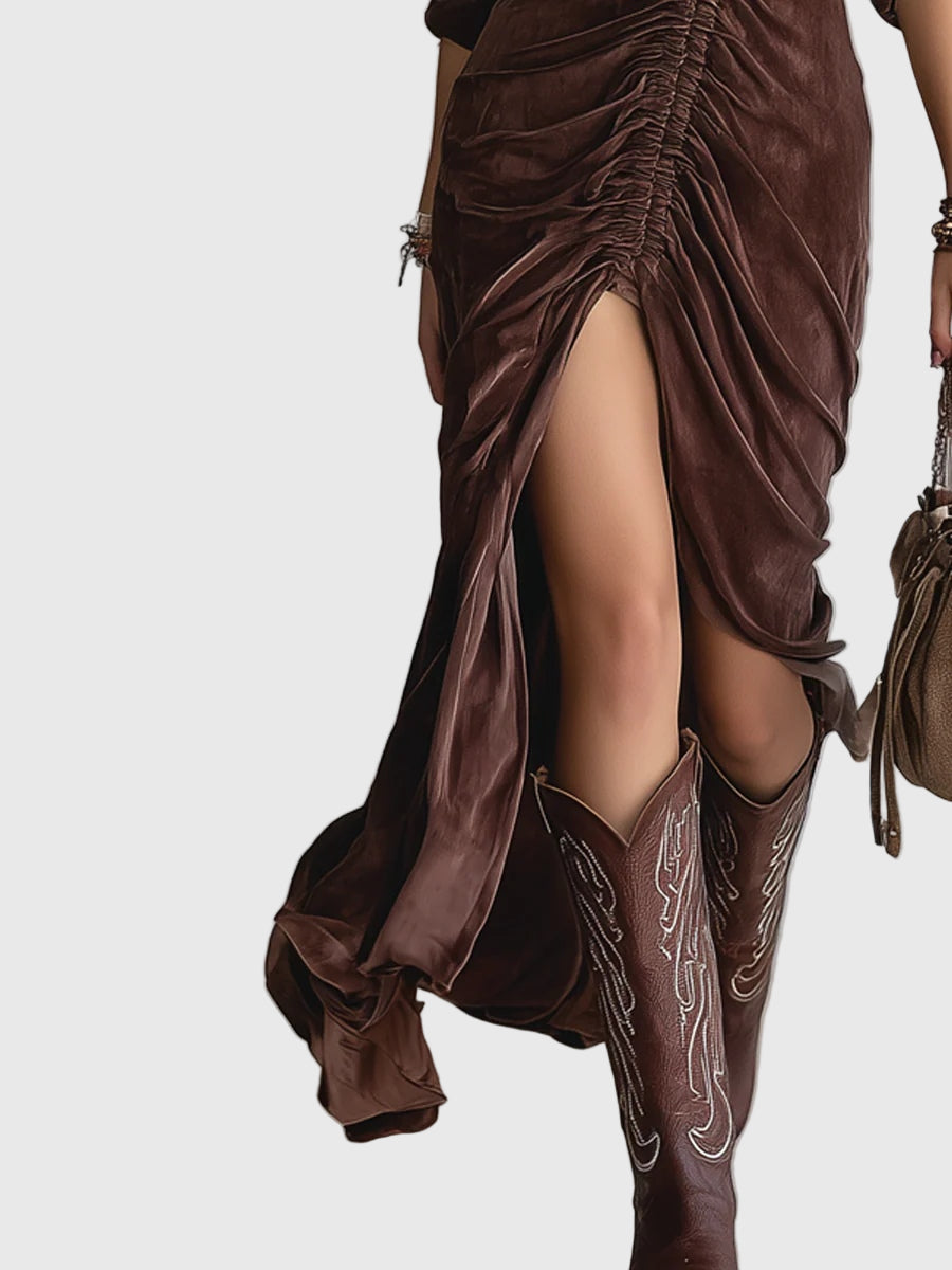 • Klotes svārki: Elegantas krokas, kas izceļ kustību un apjomu, radot graciozu izskatu.