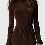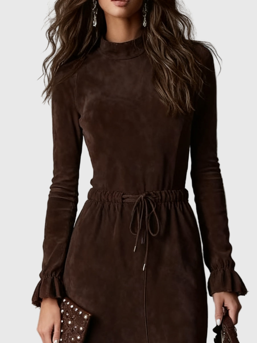 Adelina | Zamšādas midi kleita ar saitēm jostasvietā